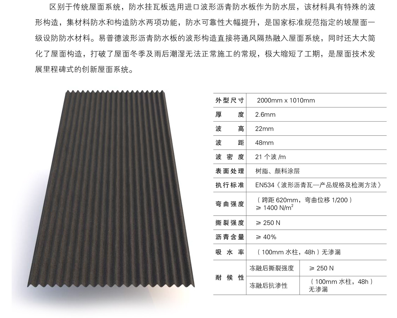 借鑒歐洲坡屋面防水理念,將平面防水改為立體防水,采用新型防水板材料,將材料防水和構(gòu)造防水于一身,配合屋面系統(tǒng)組件,實現(xiàn)全天候全干作業(yè)。節(jié)省了屋面各類保護層次,打破了屋面冬季及雨后陰濕無法施工的常規(guī),縮短了工期,提升系統(tǒng)安全性能。